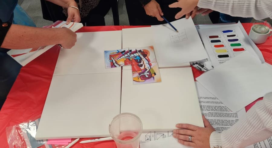This event is really treasured by our delegates and provides a lasting momento in the form of the finished work of art, created by the whole team. The art can be taken away and mounted in your offices as a reminder of the event and the value of collaboration and team work.